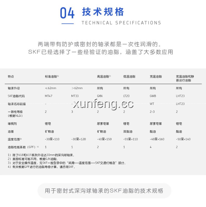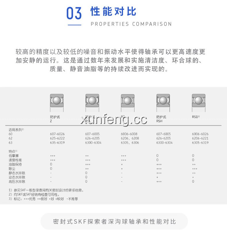 SKF深沟球轴承是一种仪器器件,有开式、双面带密封圈,带密封的轴承在外圈上开有可装密封圈或防尘盖的沟槽,适用于高转速甚至极高转速的运行。...