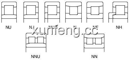 NU型、N型、NNU型及NN型适用于自由侧轴承。NJ型、NF型,可以承受一定程度的一个方向的轴向载荷,NH型及NUP型作为固定侧轴承使用。
