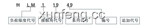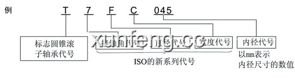 ISO355所规定的公制系列的圆锥滚子轴承中, 有不依据以往所使用的3xx尺寸系列的新尺寸。其中一部分记载于尺寸表。外圈宽度、外圈滚道的小端面直径及接触角与ISO的规定一致、内圈组件和外圈均具有*际互换性。其型号不同于以往的公制系列,构成如下。