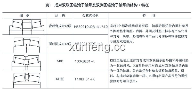 成对双联圆锥滚子轴承及双列圆锥滚子轴承的结构、特征