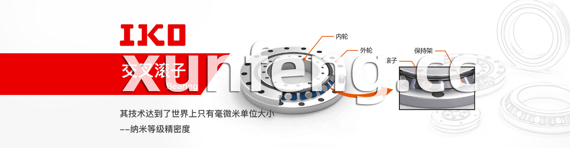 IKO交叉滚子轴承是在内圈和外圈之间正交配置滚子的紧凑型结构的轴承。滚动面为线接触,因此轴承负荷引起的弹性变位极小,且能同时承载径向负荷...
